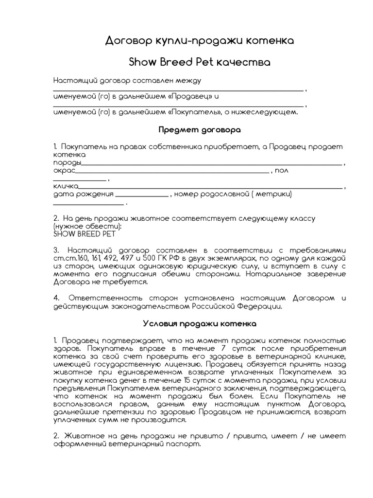 Dogovor Kupli Prodazhi Kotenka | PDF